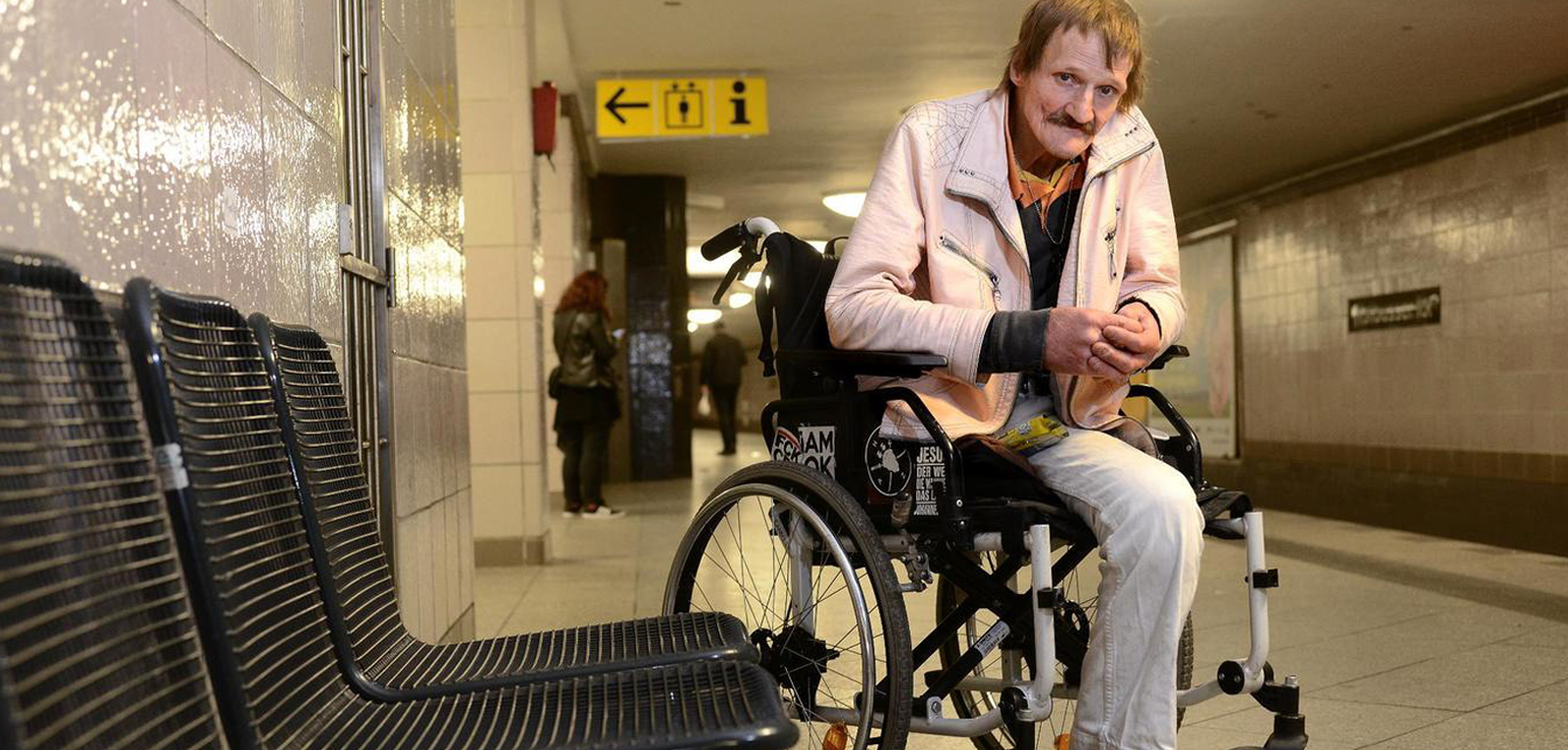 Ich gehe seit 16 Jahren schnorren, jeden Tag ein paar Stunden, in der U8. Nur in neuen Zügen, weil ich da mit dem Rollstuhl durchkann. Wenn ich 20 bis 30 Euro habe, höre ich auf. Dann kaufe ich mir etwas zu essen oder Klamotten. Ich möchte nicht aussehen wie der letzte Penner - und auch mit der Mode gehen. Ich bin immer anständig angezogen, keiner von denen, die in der U-Bahn rumstinken. Es ist mir sehr wichtig, dass ich gepflegt bin.